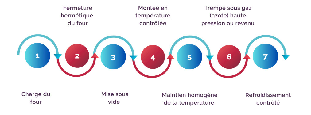 Traitement thermique de durcissement par montée en température dans une enceinte sous vide ou sous atmosphère inerte , suivi d’un refroidissement rapide généralement réalisé sous azote.